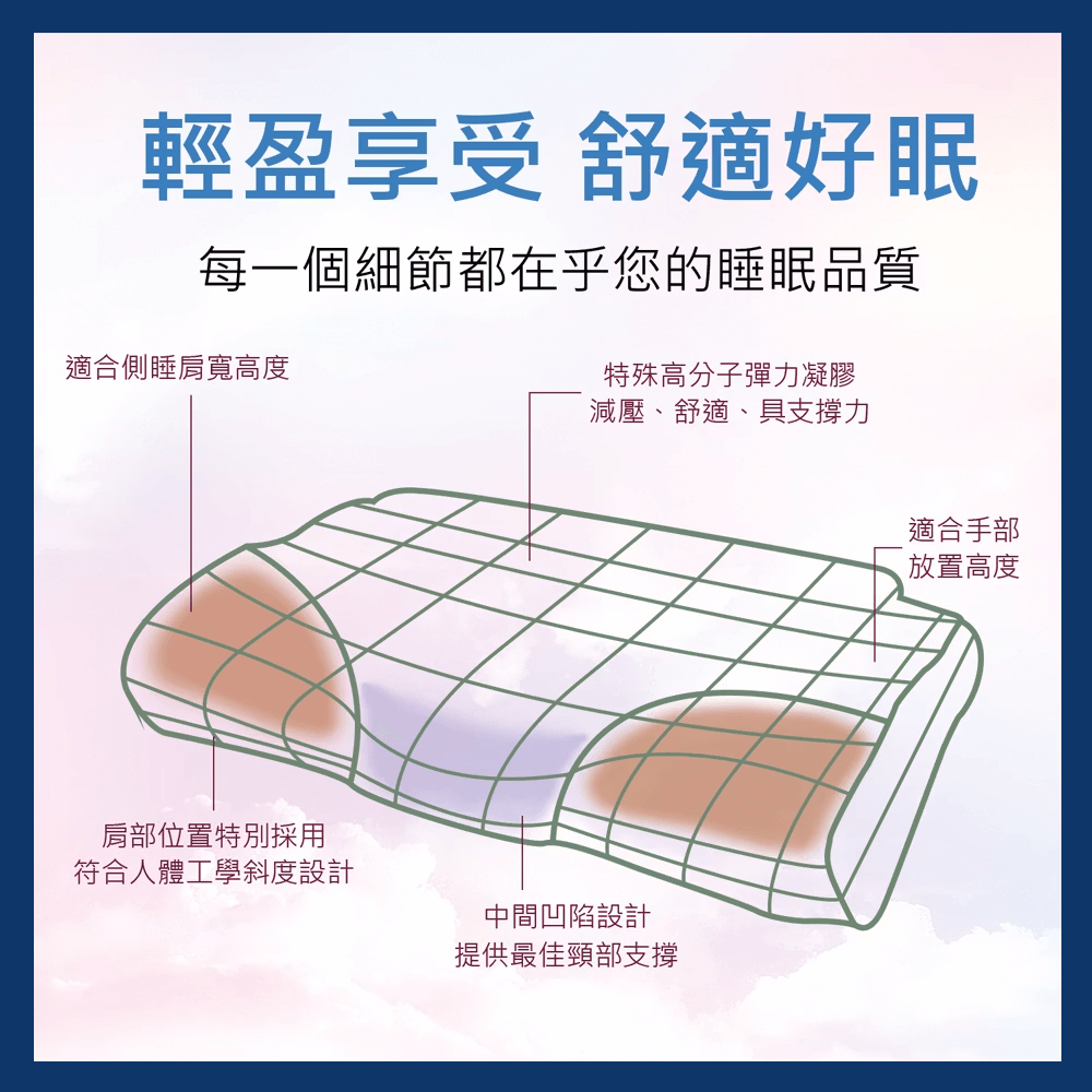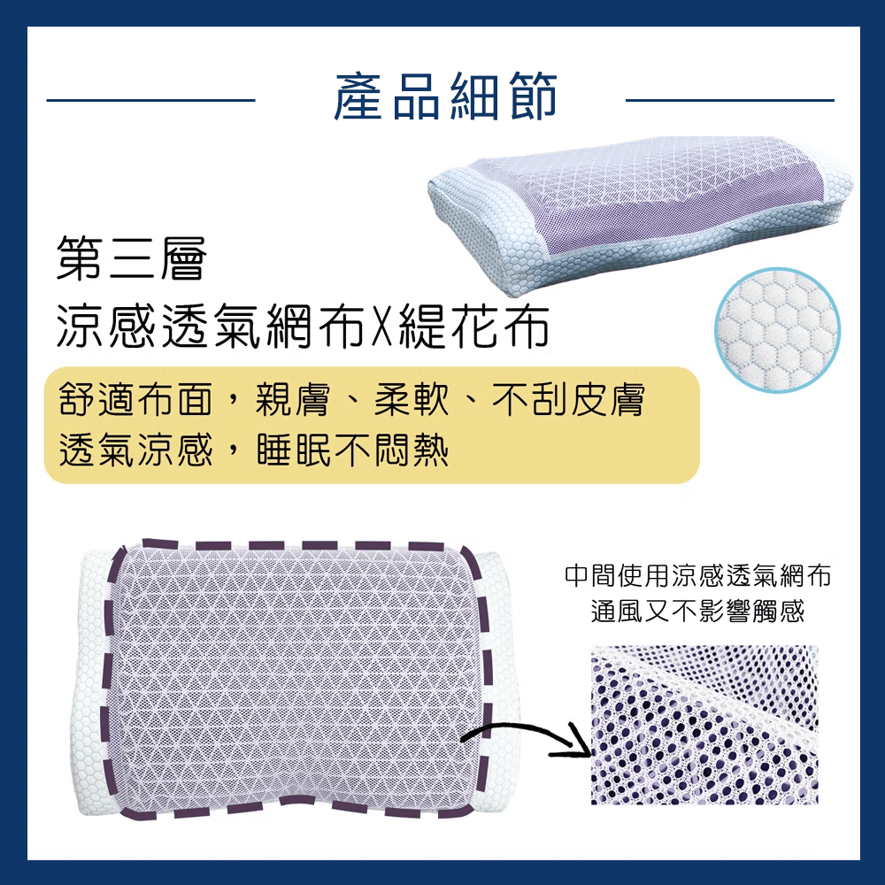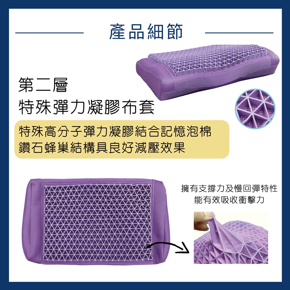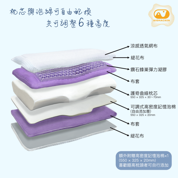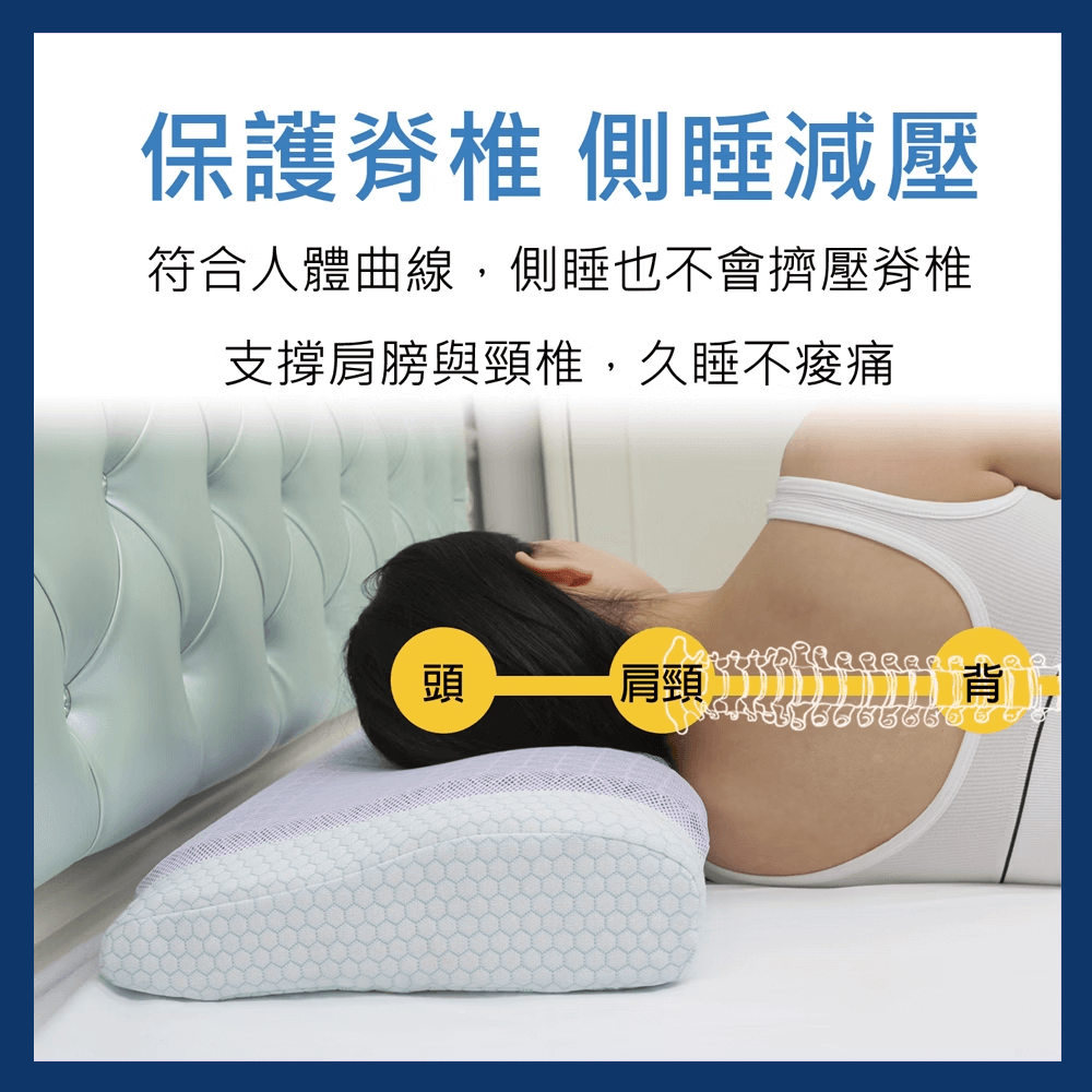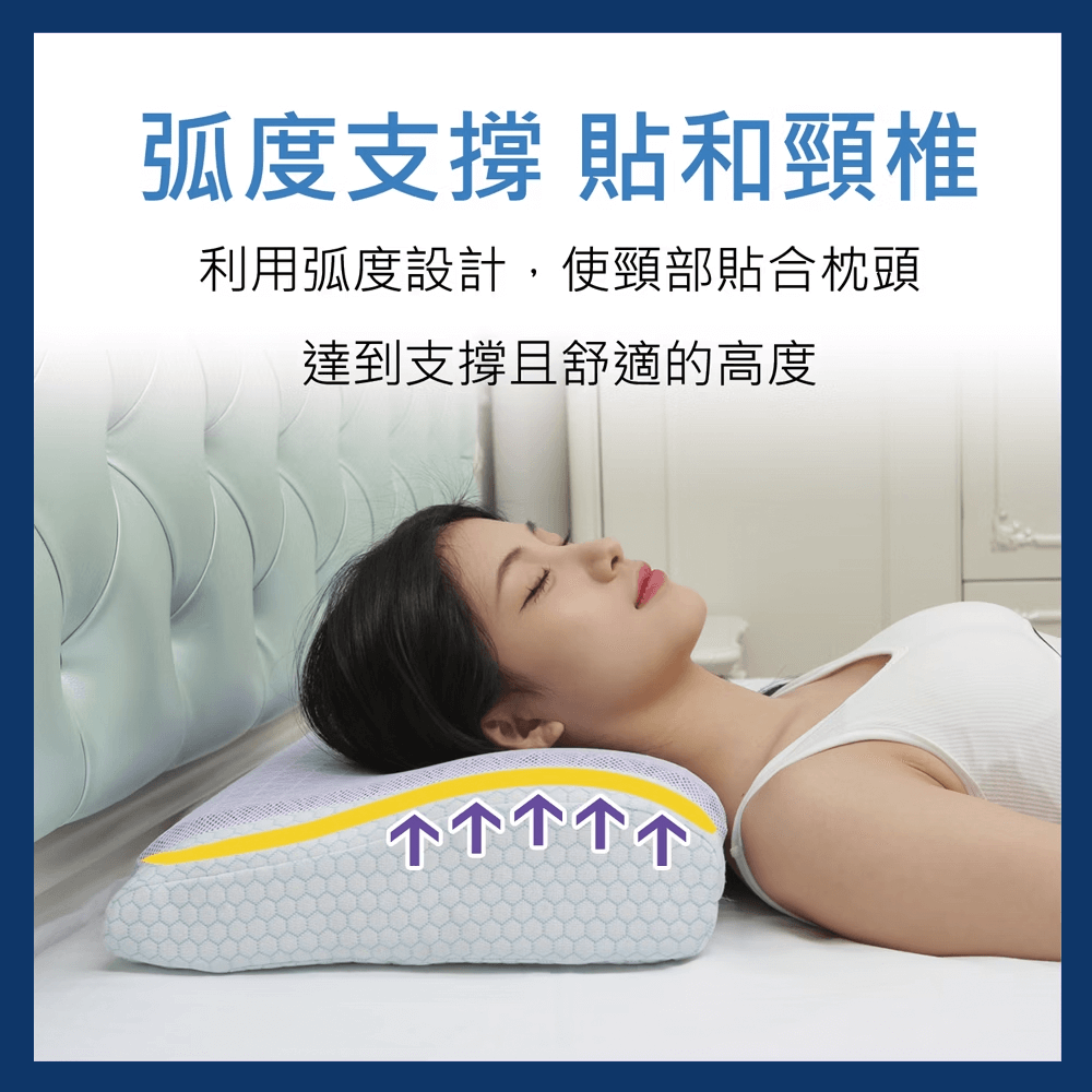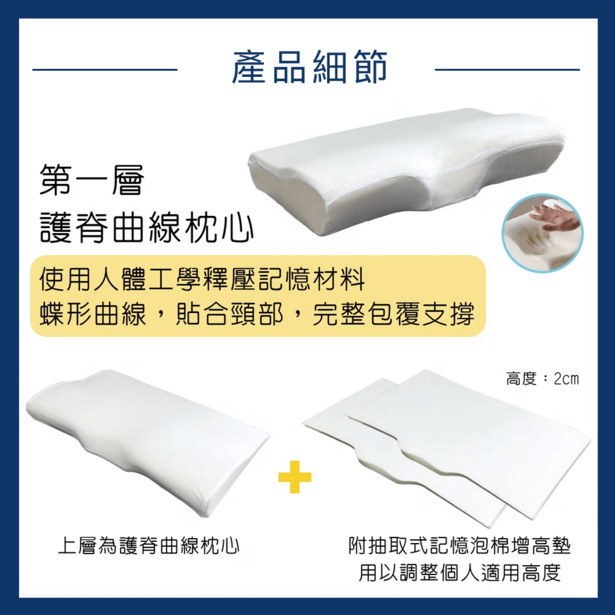 ● 高密度記憶泡棉具有絕佳的支撐性和慢回彈力,貼合頸椎曲線,有效吸收衝擊力