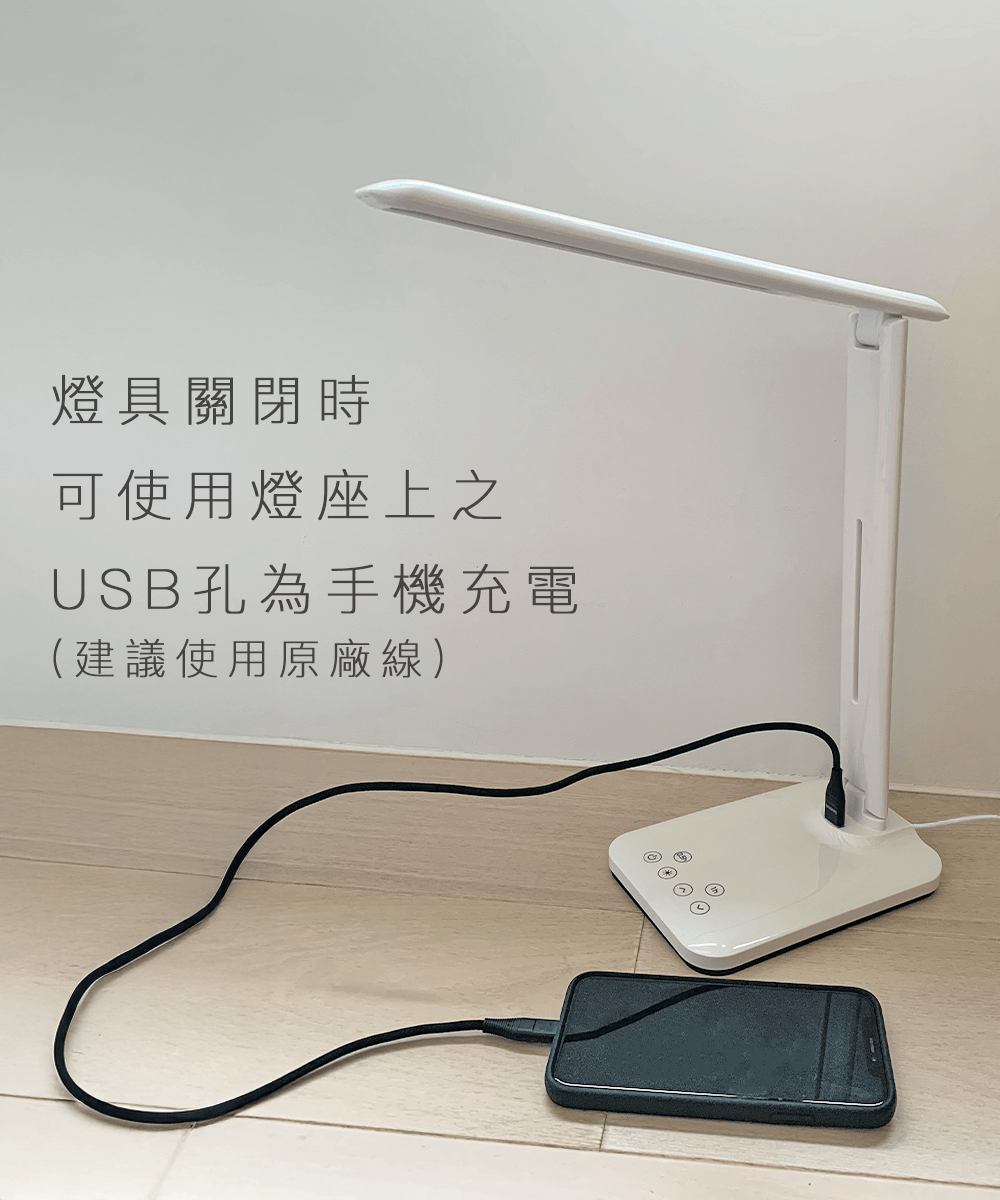 ● 燈具關閉時,燈座上的 USB 連接孔可用於為裝置充電,適合低電流設備使用。