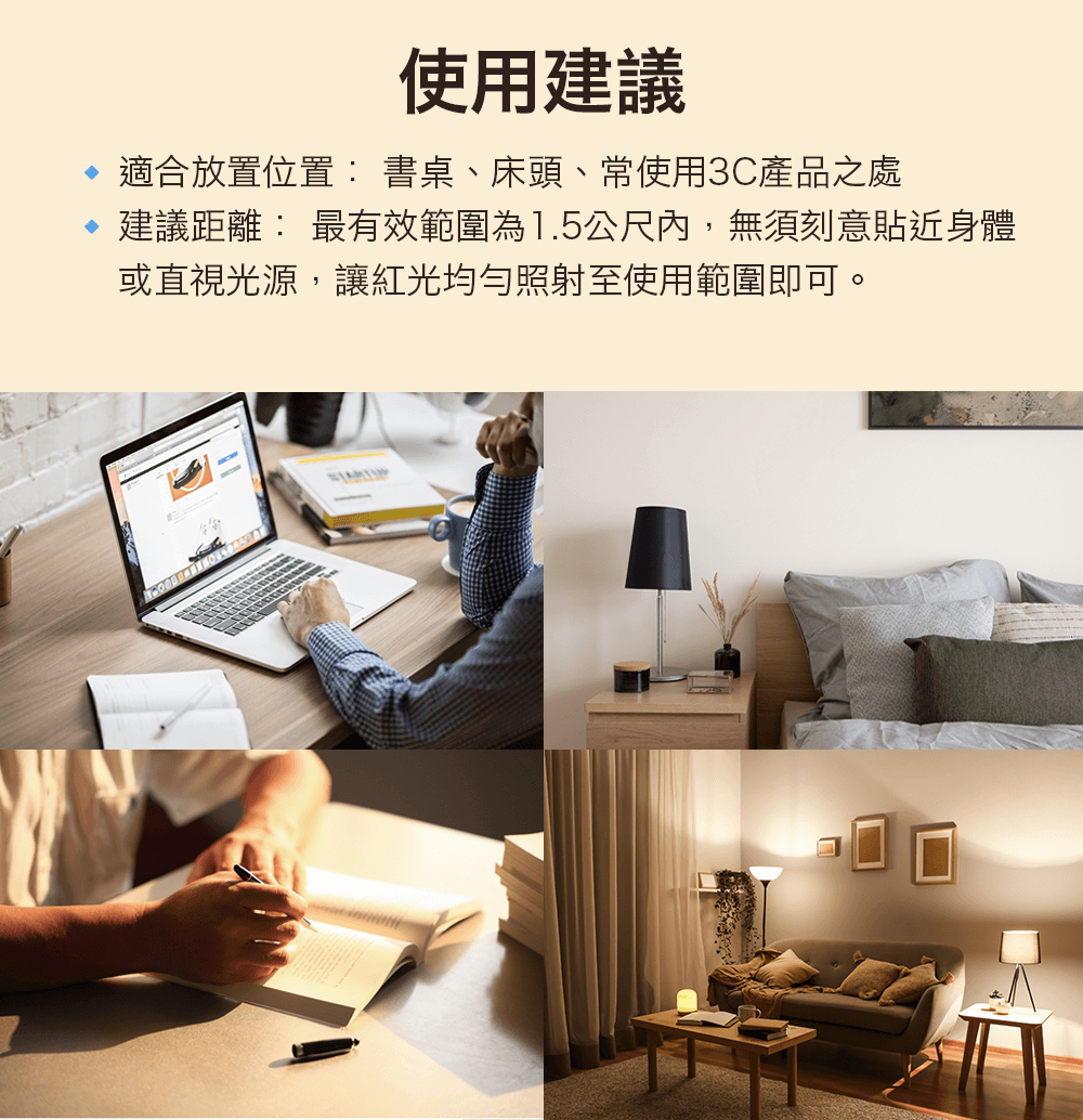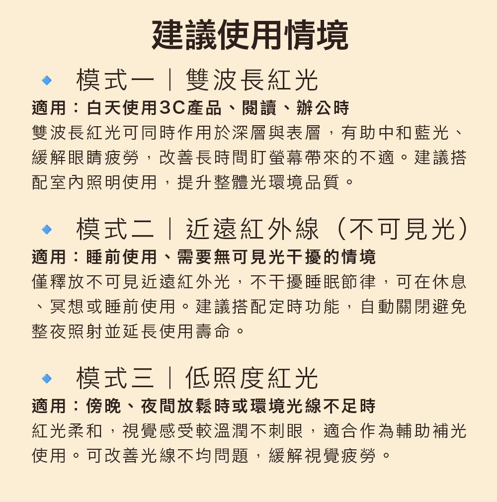 ● 低照度紅光(660nm)、近遠紅外線(810nm) 護眼不傷眼